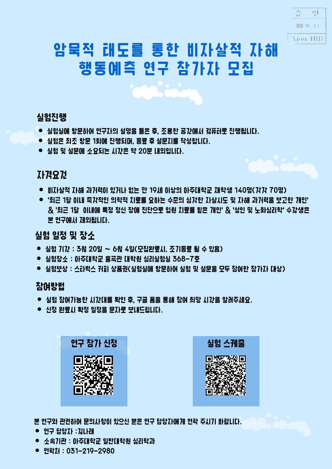 연구참가자 모집(참가자 전원 스타벅스 쿠폰 증정)