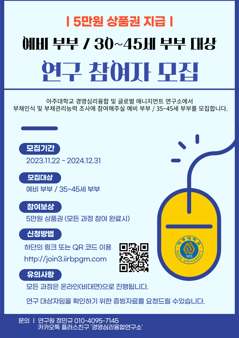5만원 상품권 지급) 예비 부부, 35세~45세 부부 대상 연구 참여자 모집