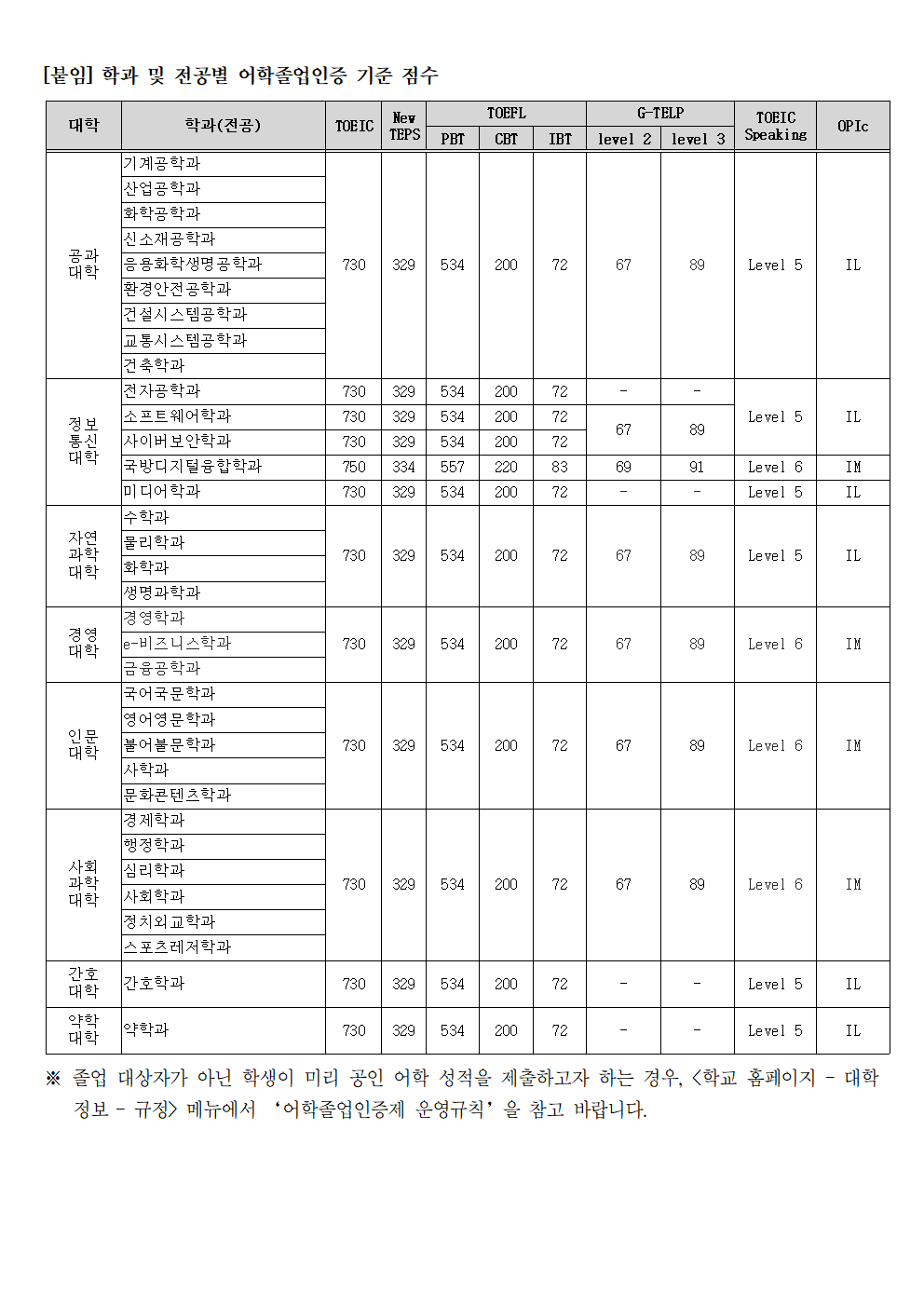 [학부] 어학졸업인증(2026년 8월 졸업)을 위한 공인어학 성적 등록 및 제출 안내 (~2026.7.24)