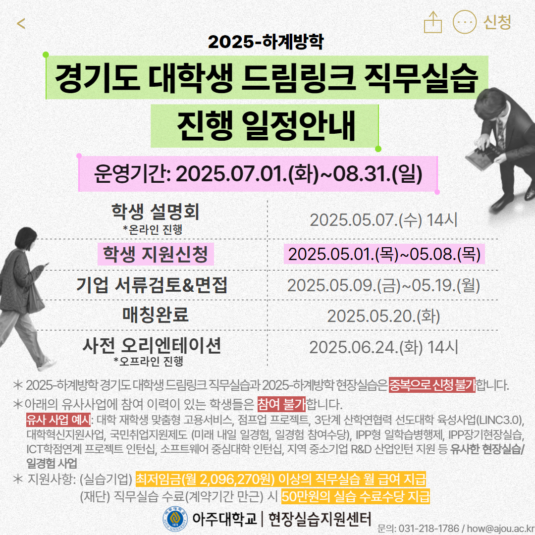 [★경기도 드림링크] 2025-하계방학 경기도 대학생 드림링크 직무실습 학생 모집 안내(★학생 지원신청 05.01.(목)~)