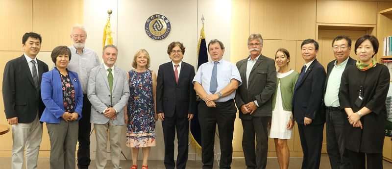 개교 초기에 재직한 프랑스인 교수 4명이 부부동반으로 지난 20일 우리 학교를 다시 찾았다. 프랑스인 교수 4명은 지난 1975년부터 1980년 사이에 우리 학교 교수로 재직했다. 이들의 방문은 우리 학교 전자공학과 74학번 동문인 권영빈 교수(중앙대 소프트웨어학부)를 통해 성사됐다.이날 프랑스 교수단은 박형주 총장을 접견하고, 불어권협력센터와 전자공학과, 기계공학과를 방문하고 1970년대 초반 우리 학교 초기시절 사진 자료 60점을 중앙도서관 대학사료실에 기증했다. 기증자료는 2023년 개교 50주년을 앞두고 기념사업을 준비 중인 중앙도서관 대학사료실에서 보관 될 예정이다. Michel Joubert 교수(1975년~1977년, 아주대 전자공학과 재직)는 "지난 40년 동안 발전한 아주대학교의 모습에 감명을 받았으며, 프랑스와의 협력을 시작으로 아주대학교가 성장한 것에 대하여 매우 보람을 느낀다"고 말했다.