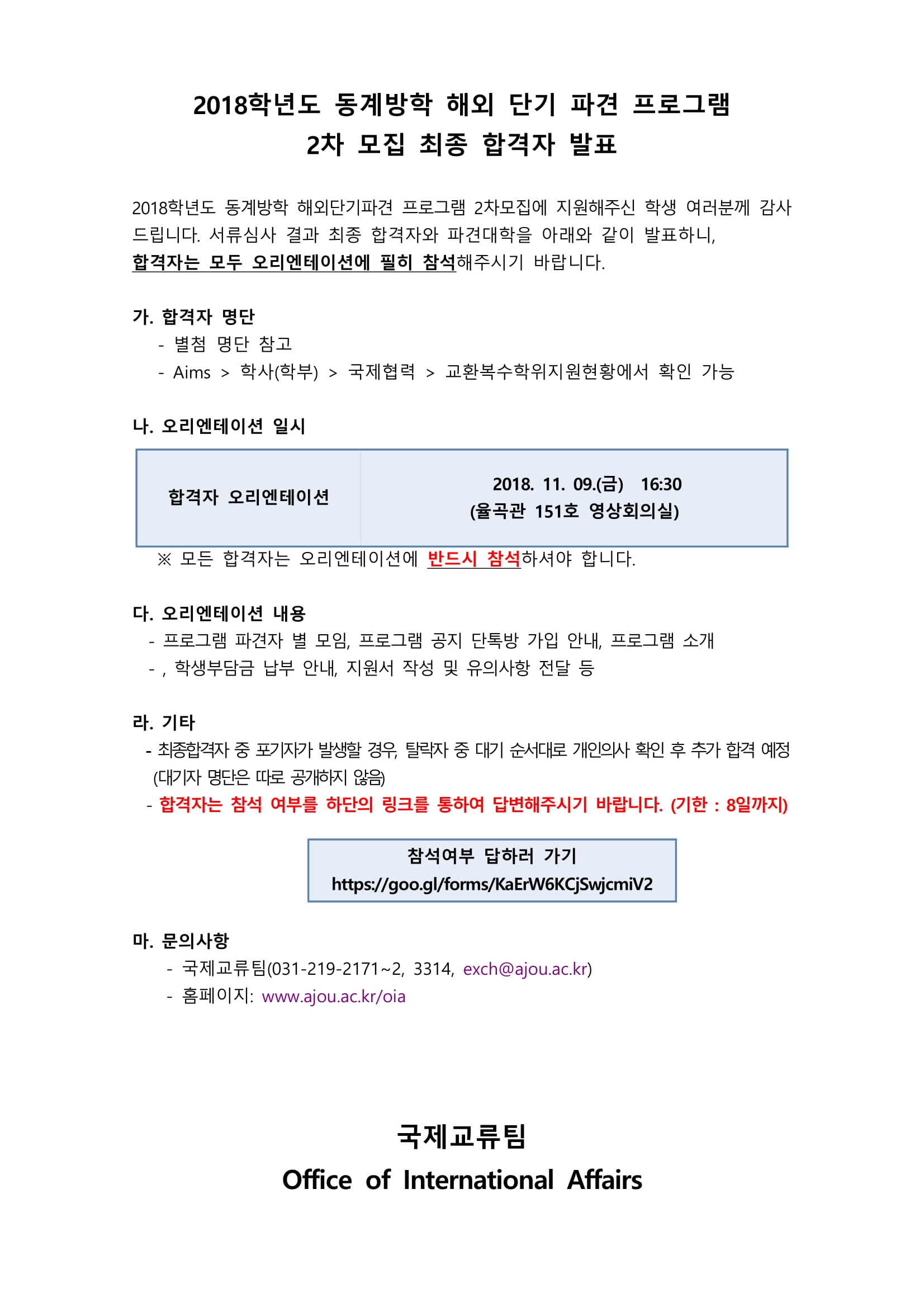 [아주 인터네셔널 데이] Ajou International Day 2018 에 여러분을 초대합니다. (11.8) Invitation to Ajou Interntional Day 2018 (Nov. 8)